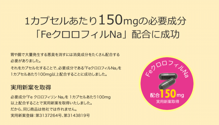 【ヤマトメール便無料】消臭サプリ Feクロロフィル(280mg×30カプセル)+お楽しみサンプル5袋付 栄養機能食品