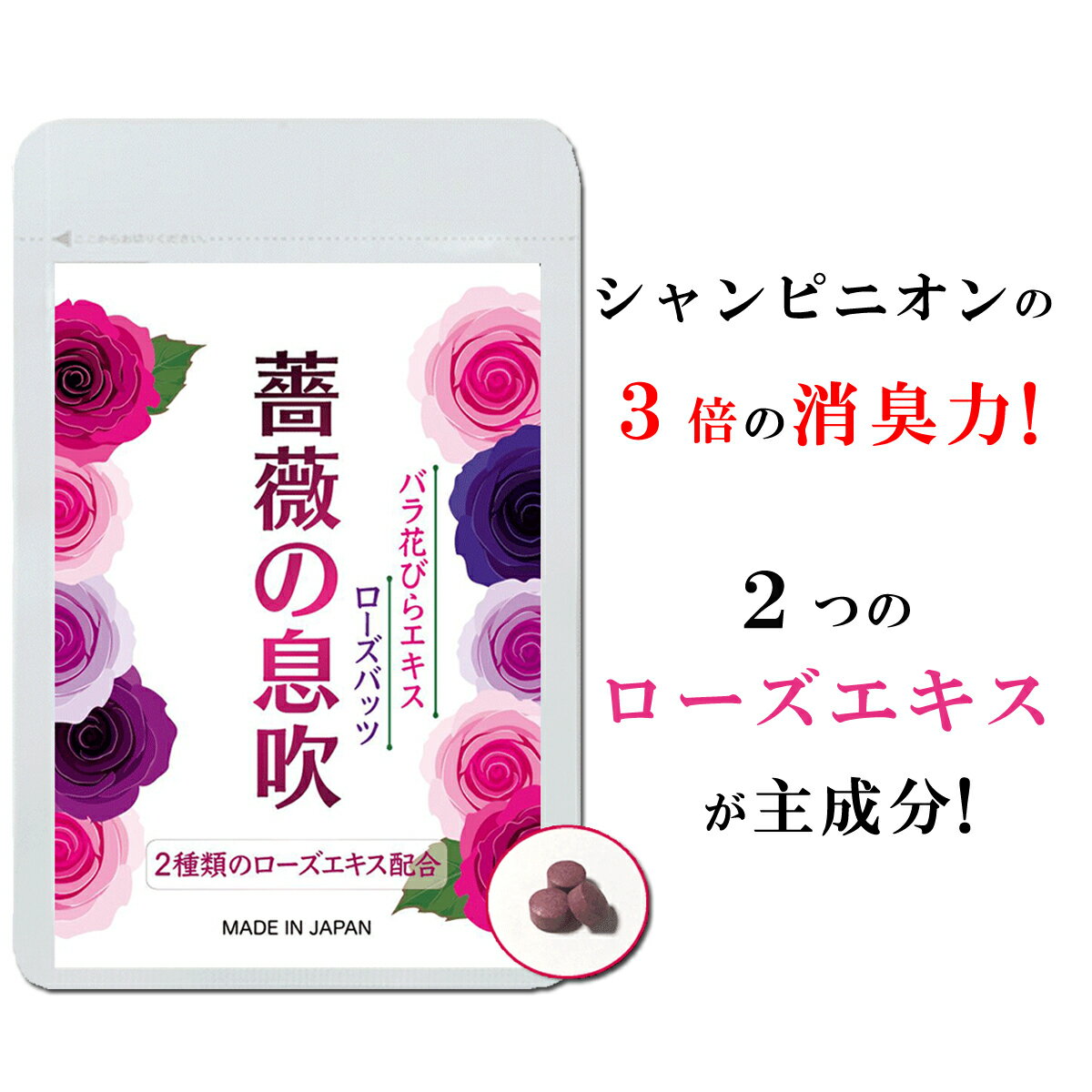 口臭サプリ ローズ 薔薇 サプリ 口臭予防 薔薇の息吹 加齢臭 ニオイケア 体 加齢臭 シャンピニオンの3倍の消臭力 ! エチケット サプリ ワキガ 便臭 汗 足 デリケートゾーン におい ダブルのローズ成分配合 ダイエット 肌