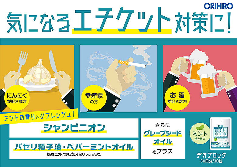 【2/18〜何度も使える最大300円クーポン】 【エントリーでポイント最大4倍】 メール便 送料無料 オリヒロ デオブロック 30粒 30日分 シャンピニオン orihiro / サプリ サプリメント 女性 男性 シャンピニオン シャンピニオンエキス 消臭サプリ 口臭 口臭予防 体臭